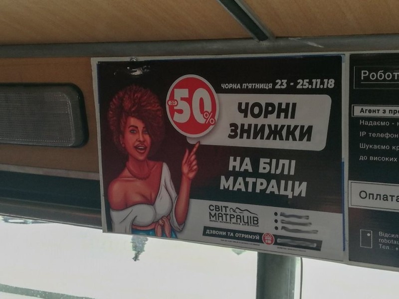 «Не знаю, хто «креативить» для компанії «Світ матраців», але така реклама – це расистське дно», – написав автор.
