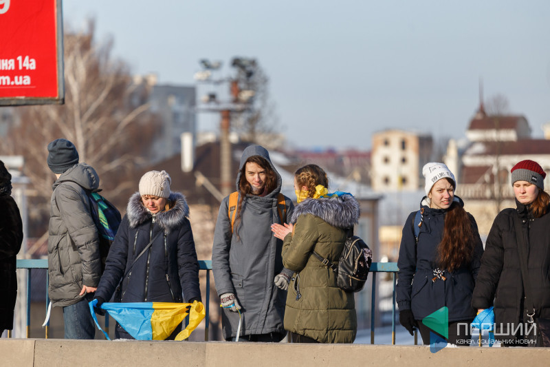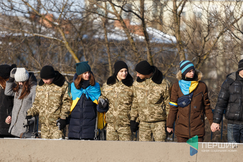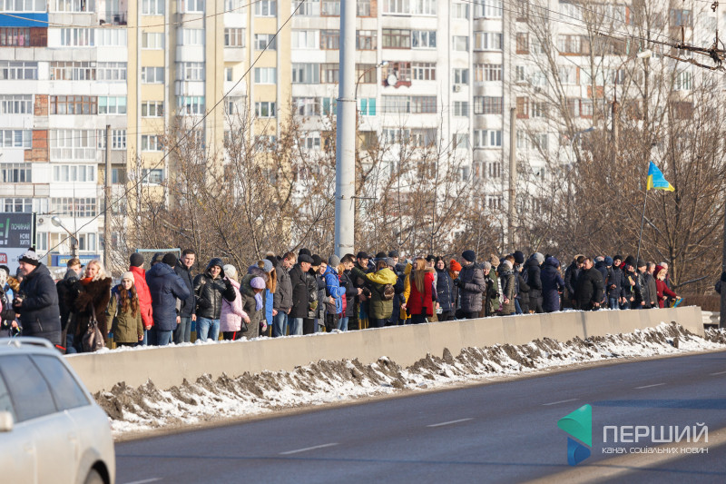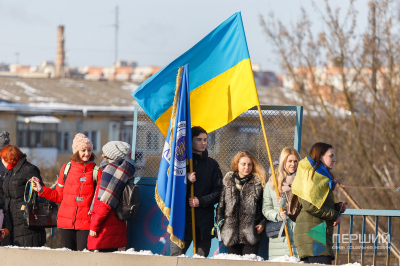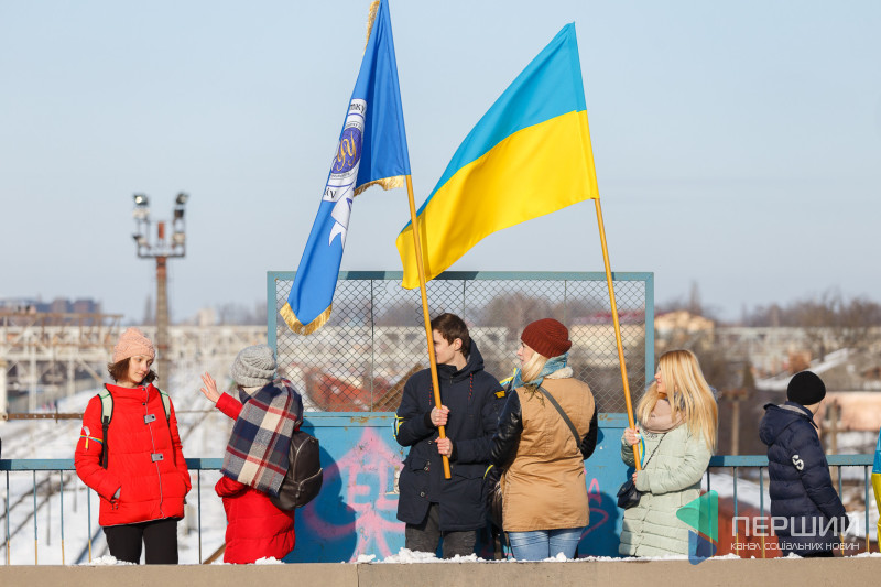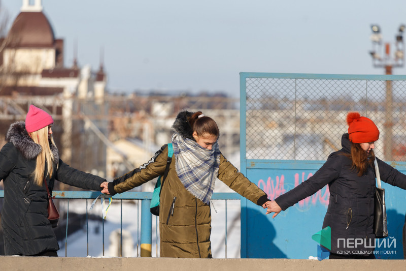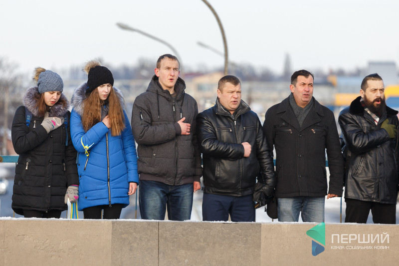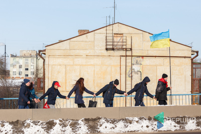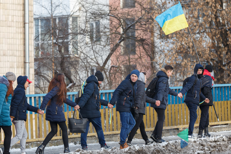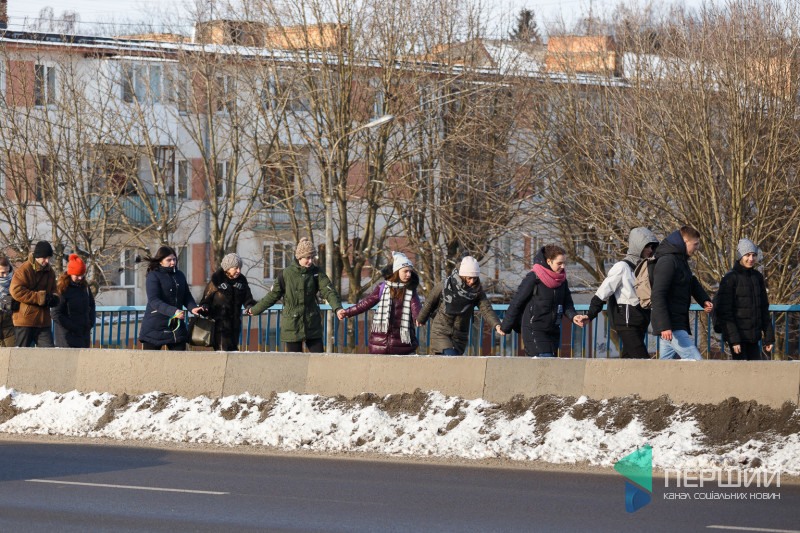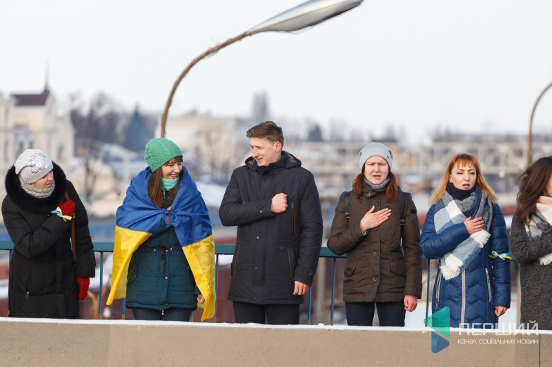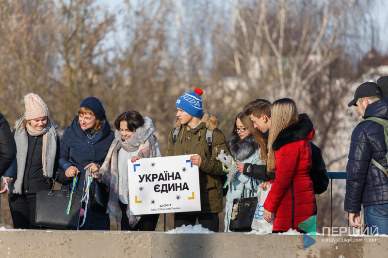 У Луцьку на мості, що з’єднує проспекти Перемоги та Соборності, містяни утворили «Ланцюг єдності», який приурочений до Дня Соборності України.