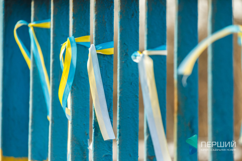 В кінці акції учасники виконали гімн України та прикрасили міст жовто-блакитними стрічками.