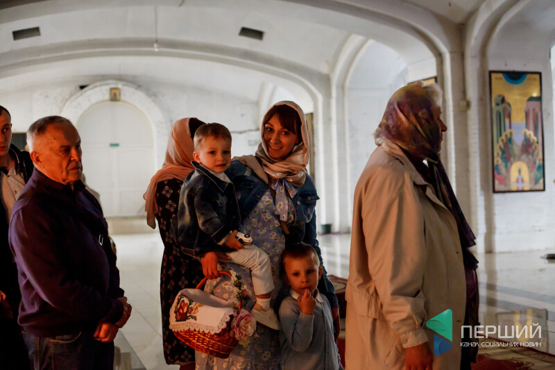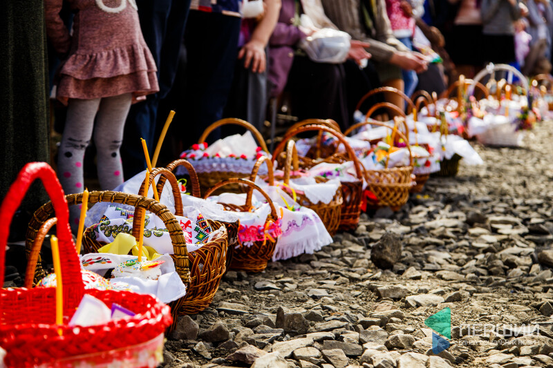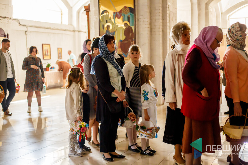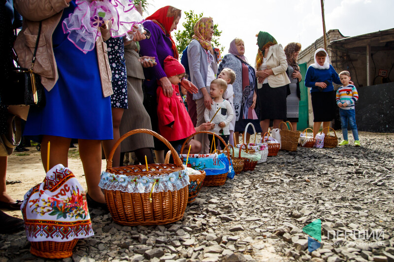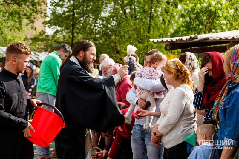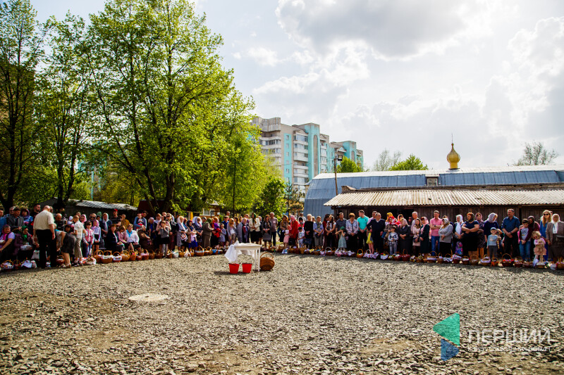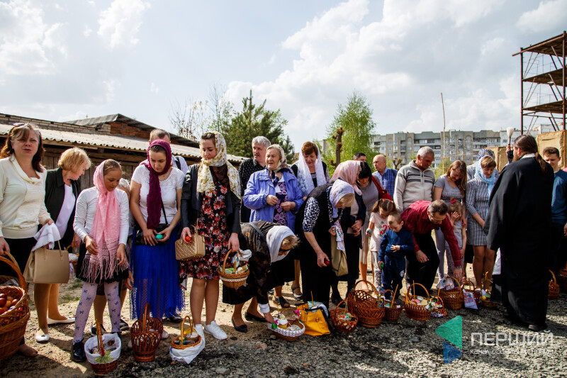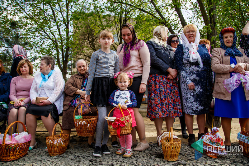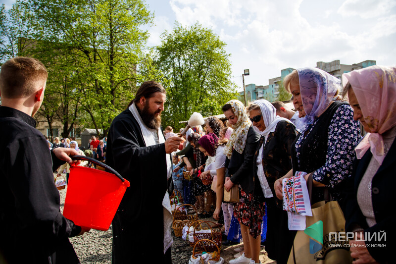 На території храму Всіх Святих землі Волинської цього дня людно. Чимало лучан прийшли освятити святкові кошики із наїдками перед Великоднем.
