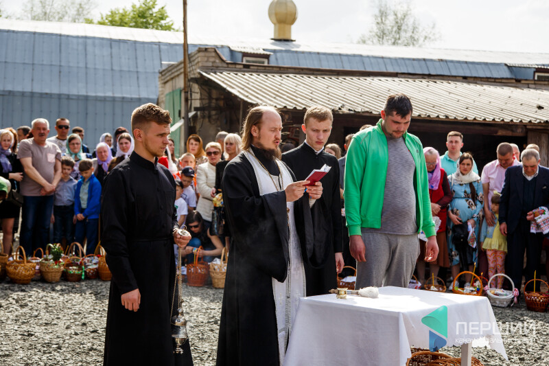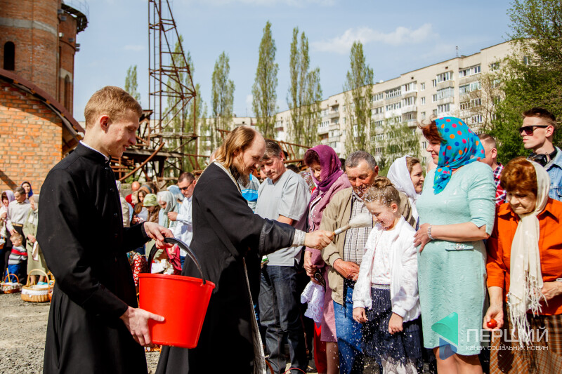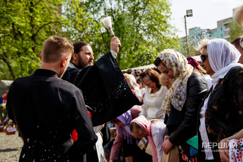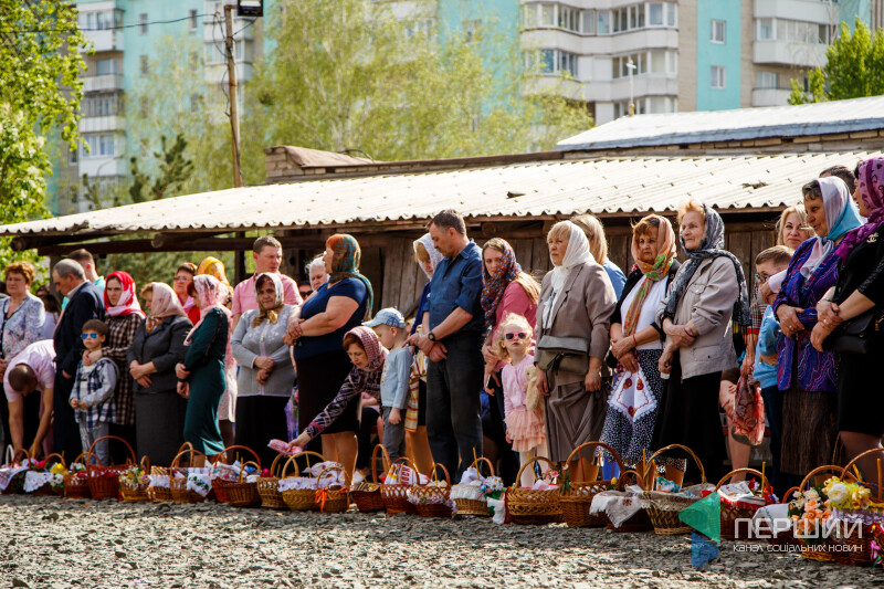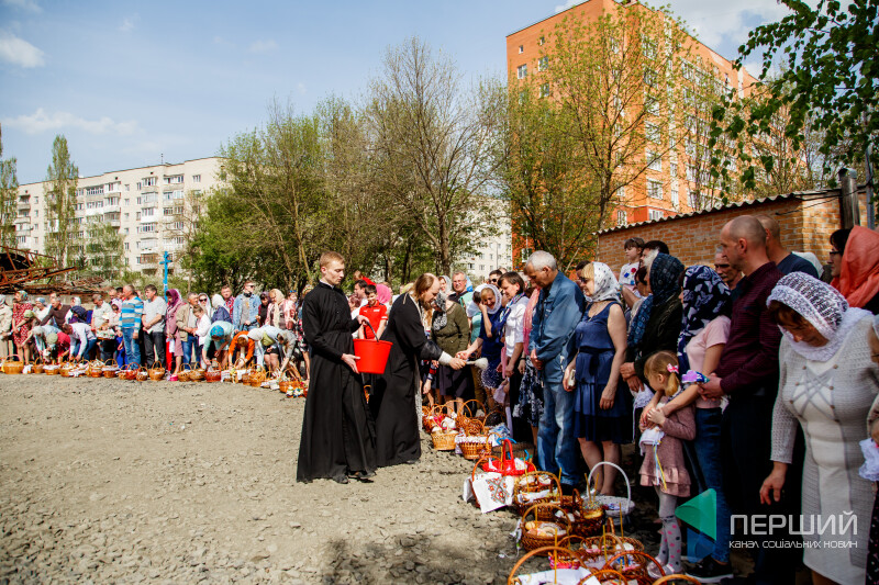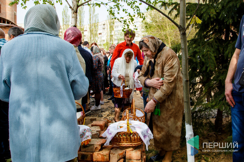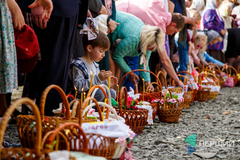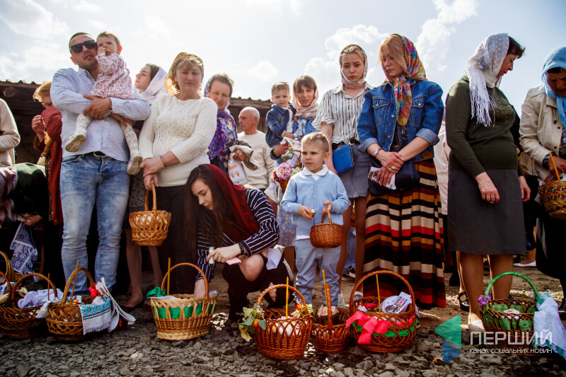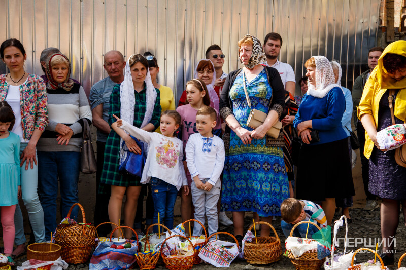 На території храму Всіх Святих землі Волинської цього дня людно. Чимало лучан прийшли освятити святкові кошики із наїдками перед Великоднем.