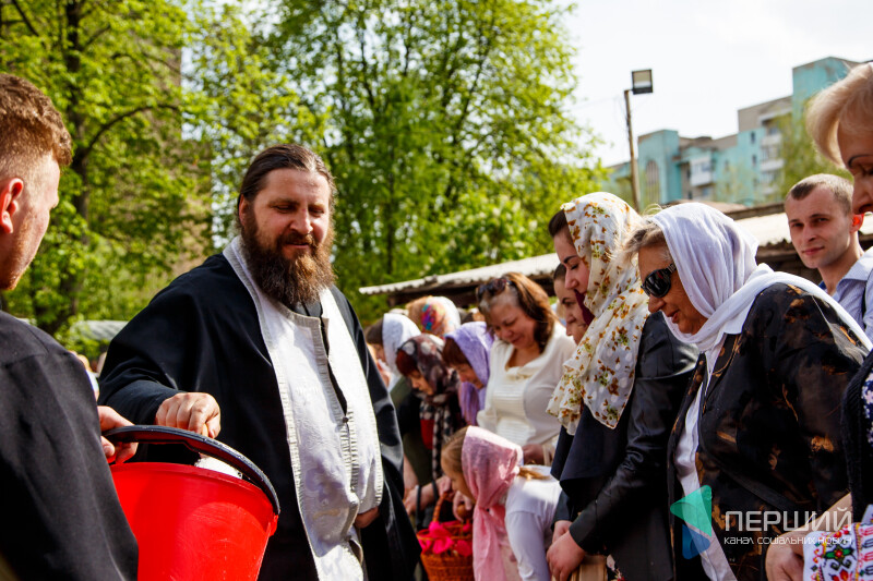 Традиційно освячення пасок розпочалось пообіді. Люди ставали по колу, запалювали свічки та чекали поки священик прочитає молитву і щедро побризкає їх водою.