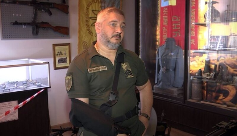 "Тут залізо, касетні набої, які прилітають від російських солдатів, начиння, яким начиняють снаряди, які розлітаються і ранять наших хлопців, є трофейний шолом російський", – говорить Костянтин Бойчук.