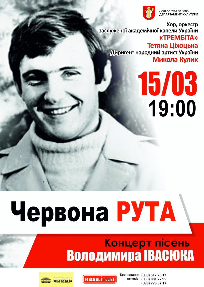 У Луцьку презентують концертну програму пісень легендарного  українського композитора Володимира Івасюка «Червона рута».