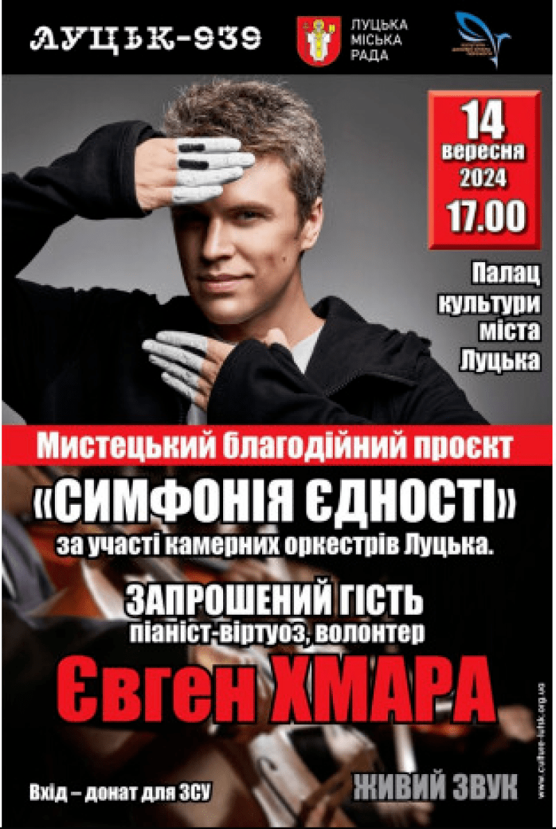 У суботу, 14 вересня, у Луцьку відбудеться мистецький благодійний проєкт «Симфонія єдності».