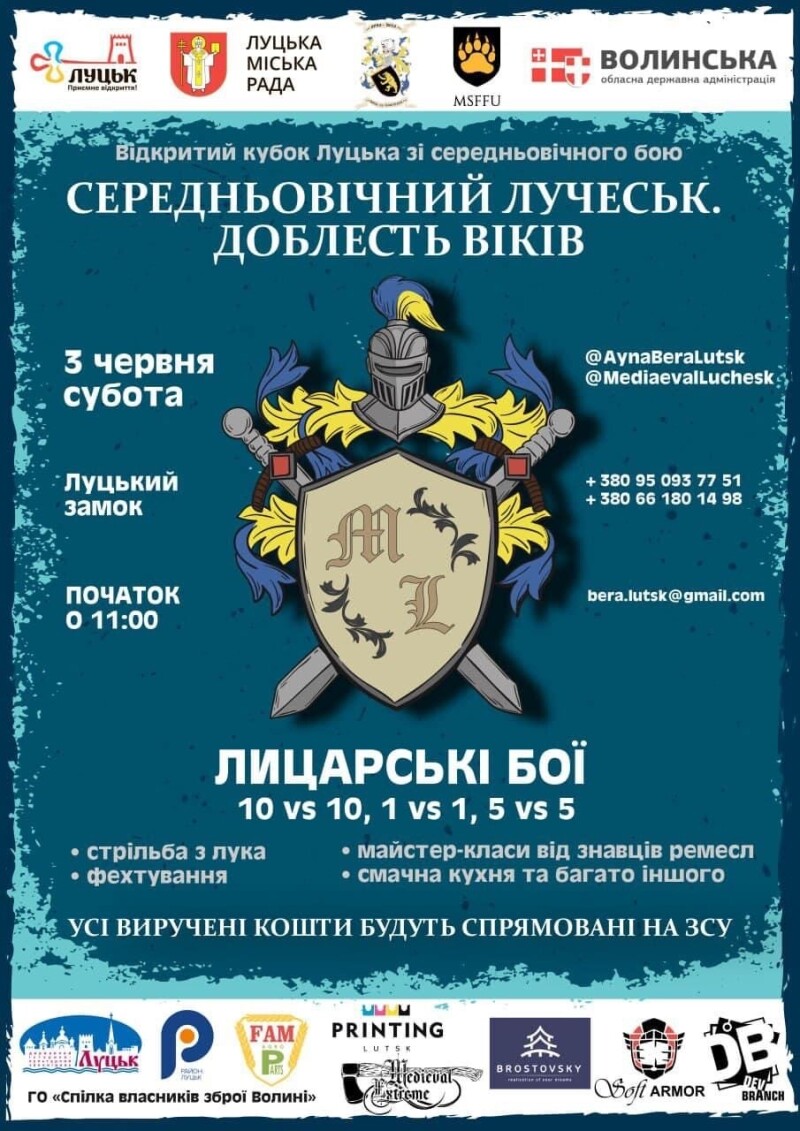 У Луцькому замку відбудуться лицарські бої. Усі виручені кошти з проведення турніру будуть передані на підтримку ЗСУ.
