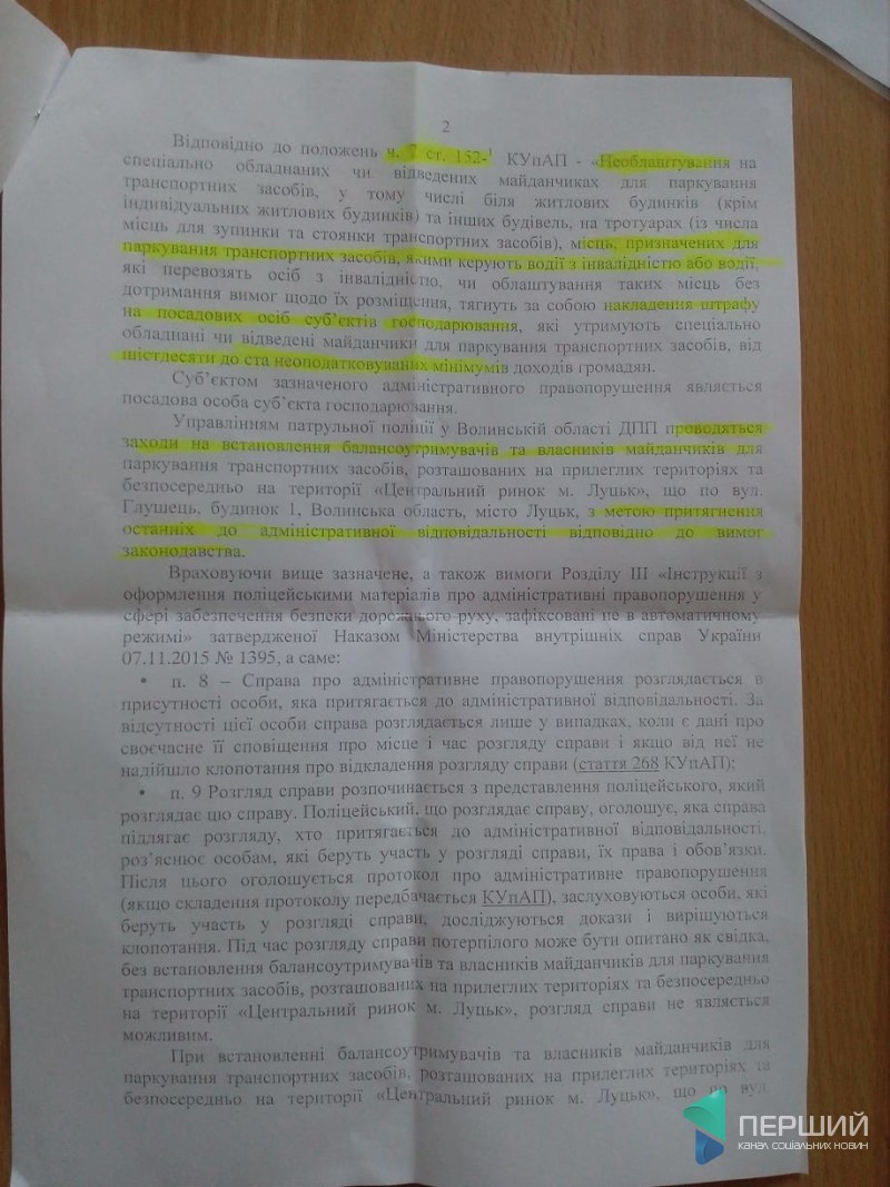 На вимогу поліцейських надати документи-дозвіл на проведення підприємницької діяльності, працівники автостоянки сказали, що їх тут немає, лише в офісі ПФ «Скорпіон-сервіс», куди «дружинники» й поїхали, де й надали документи. Там представники фірми пообіцяли протягом місяця освіжити розмітку та позначити місця для інвалідів.