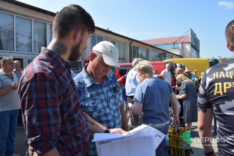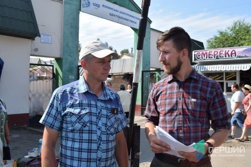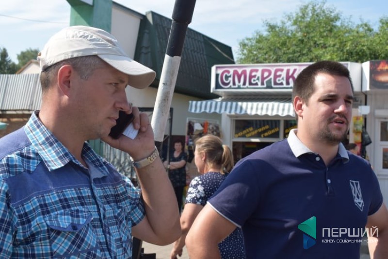 Учасник організації Олексій Кушнєр розповів, що територія біля ринку здається в оренду ПФ «Скорпіон-сервіс», але, коли він сюди заїхав кілька днів тому, працівники надали чек, де було вказано, що підприємницьку діяльність тут веде Валерій Скришевський.