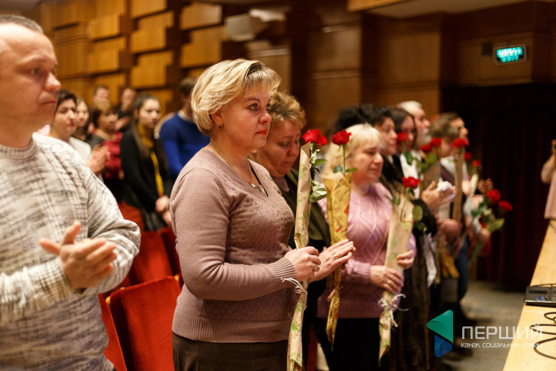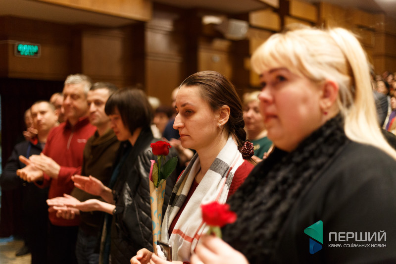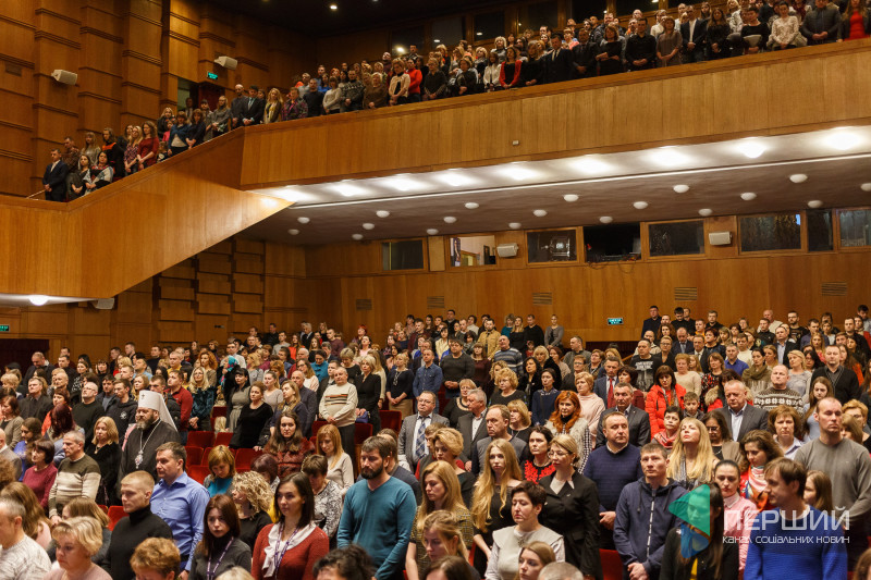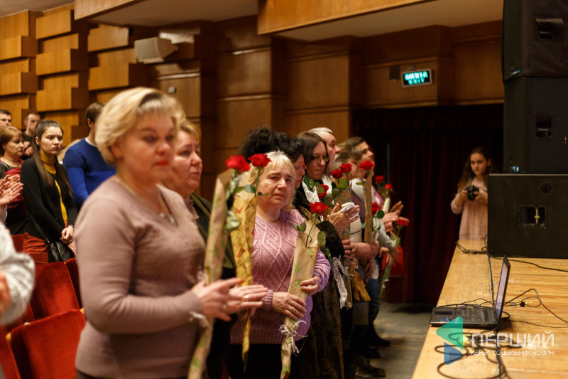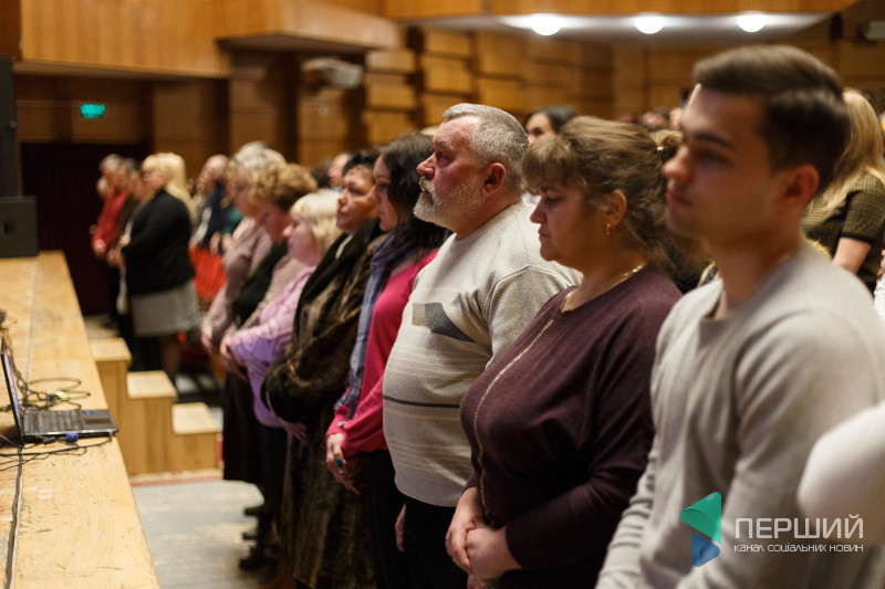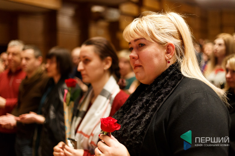 Розпочався концерт піснею «Пливе кача по Тисині» і хвилиною мовчання. Запрошеним родичам полеглих бійців подякували щирими оплесками, а учні військового ліцею вручили їм квіти.