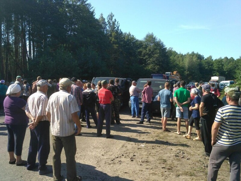 На автодорозі між селами Прилісне та Галузія Маневицького району близько півтори сотні людей не пускають важку техніку комунального підприємства «Волиньприродресурс». Її планують завезти на ділянку, де хочуть проводити георозвідку і видобуток бурштину.