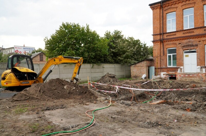 Працівники підрядної організації почали наводити лад на території ще 29 серпня – викорчовували коріння дерев, скошували траву, а з 10 вересня, після отриманого дозволу на будівництво, тут розпочались активні роботи, яким, щоправда, спершу завадили 30 тон лікарняного септика. Цю віднайдену у землі знахідку довелось відкачувати, аби продовжити будівництво.