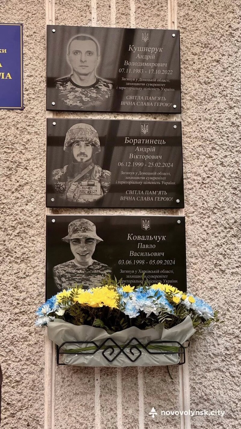 У Нововолинській спеціальній школі встановили меморіальні дошки на честь трьох випускників — Андрія Боратинця, Андрія Кушнерука та Павла Ковальчука, які героїчно загинули, боронячи Батьківщину.