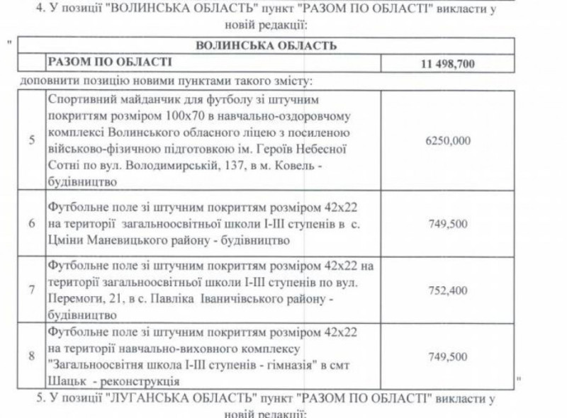 Кабінет Міністрів України прийняв пропозицію Маневицької райдержадміністрації на будівництво нового футбольного поля.