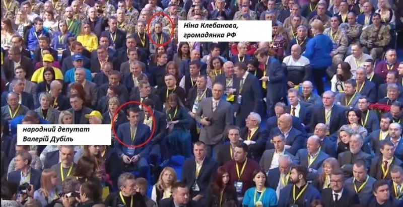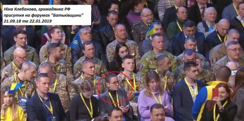 Крім того, він показав фотографії, де видно, що на з'їзді «Батьківщини» російська політтехнолог сиділа поміж учасників АТО.
