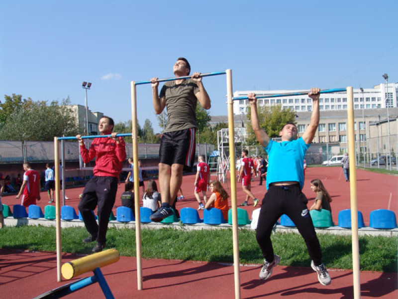 Після офіційної частини спортивне свято продовжилося флешмобом із підтягування на перекладині й виступами кращих студентських команд університету з футболу, волейболу та баскетболу.