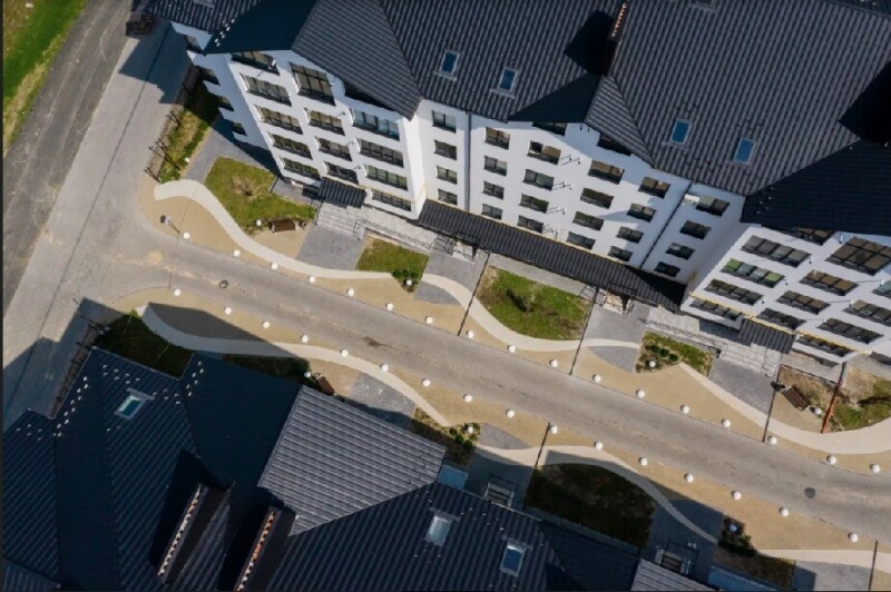 Зручний двір зі стежками для прогулянок, а також окремі парувальні місця для людей з обмеженими потребами.