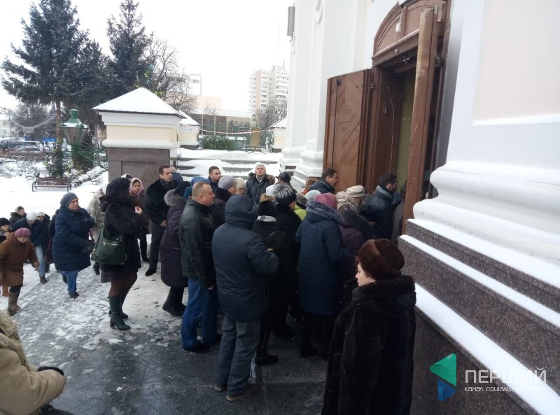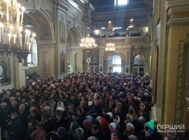 Храм – повний людей. Багато то прийшов з дітьми. Люди підходять ще, частина стоїть на порозі Собору.