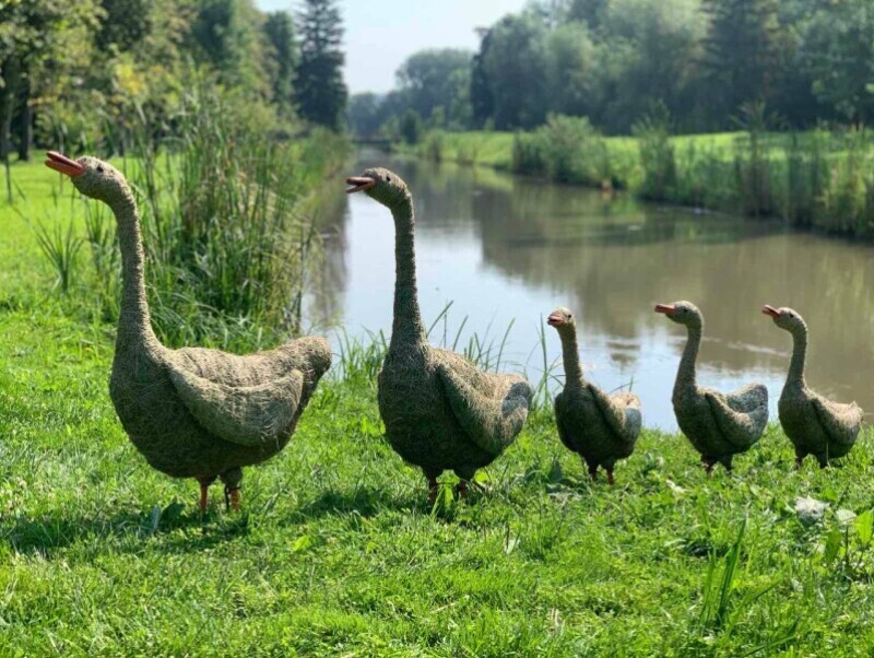 Роботи виконані із лісової трави, сформовані з макетів птахів: лелеки та гуси, які є оберегом родинного затишку, добробуту і злагоди, символізують любов до рідної землі, до Батьківщини …