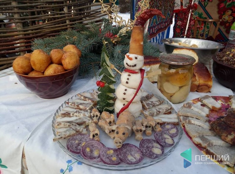 Учасники фестивалю із Любомльського району продають різні смаколики: домашнє печене м’ясо, сало, рибу, пончики, кутю та інші закуски.