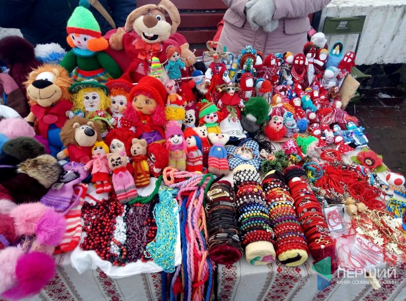 Продають ляльки-мотанки, прикраси ручної роботи, кераміку, меди.