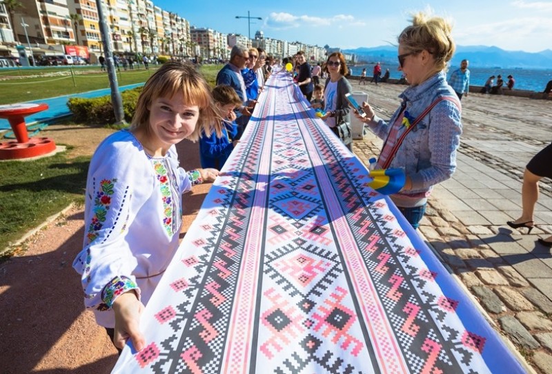 Вперше в історії святкування українцями за кордоном дня вишиванки, а саме у турецькому місті Ізмір, на березі Егейського моря, був встановлен рекорд - найдовша вишиванка.