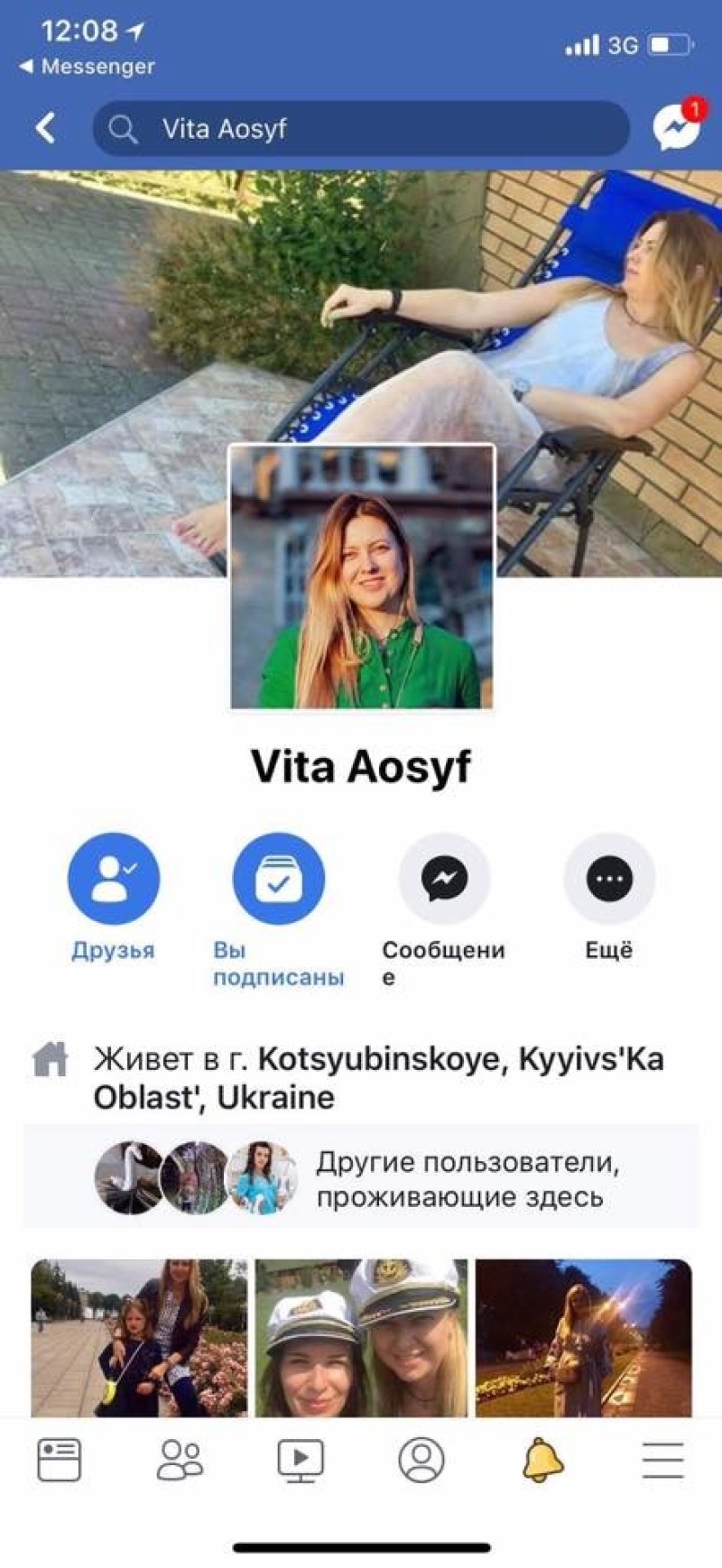 За її словами, невідома особа створила профіль з її фото. «Двійника» звати Vita Aosyf.