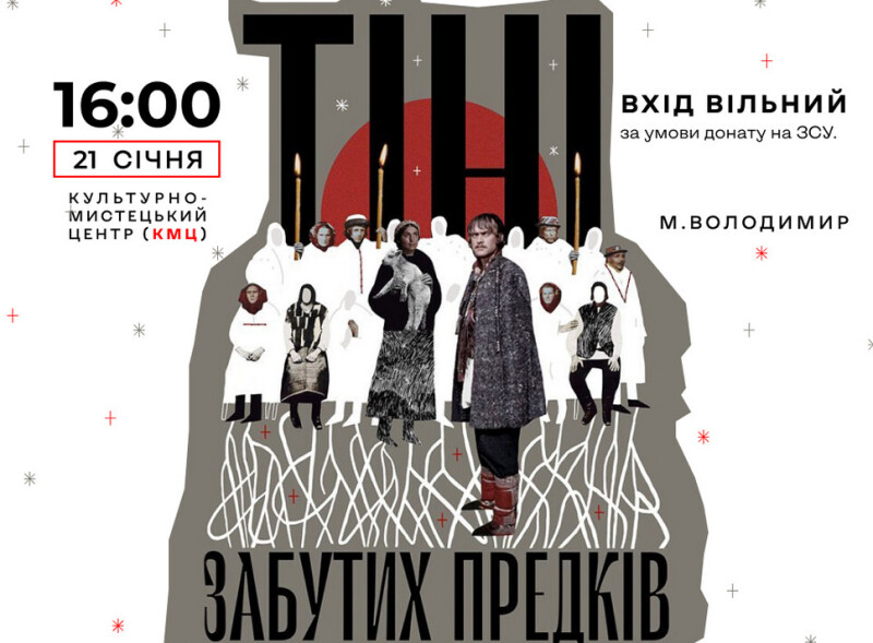 Молодіжна громадська організація Володимира «44700» організовує кінопоказ стрічки Сергія Параджанова «Тіні забутих предків» у кінотеатрі культурно-мистецького центру.