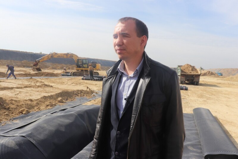 «На сьогодні можна побачити, що дійсно ми встигаємо у будівництві цього об’єкта. Саме зараз працівники встеляють плівку на дно котловану. Підготовані траншеї, якими відводитиметься фільтрат – тут будуть прокладені труби.