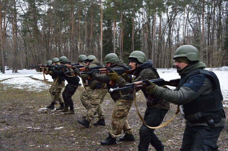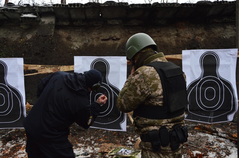 Після зарядки – гігієнічні процедури та сніданок. Кілька хвилин перерви – і рівно о 9 годині розпочинаються заняття з інструкторами. Кожен взвод розходиться по різних точках: перший іде на вогневу підготовку, вони стрілятимуть з автоматичної зброї. Другий – на домедичну, ці заняття відбуваються на вулиці. Третій – займається в тиру, тут стріляють з пістолетів. Четвертий проходить теоретичні заняття. Опісля взводи заміняють один одного. Таким чином, протягом дня всі однаково пройдуть усі блоки занять. І так – щодня.