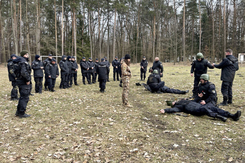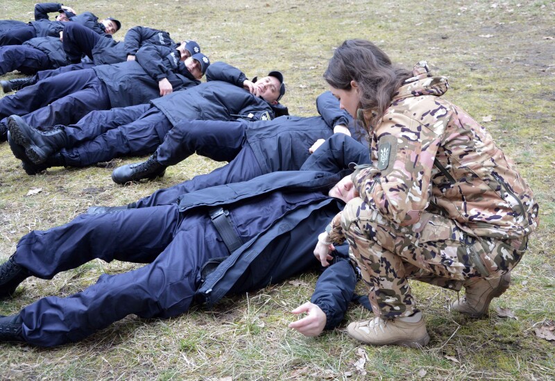 На тактичній підготовці діляться на умовних «ДРГшників» та поліцейських. Другі мають засвоїти, як знешкодити перших, як переховуватися, як маскуватись тощо.