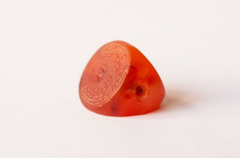 «Матеріал – камінь сердолік. Оправу, швидше за все, забрали тоді німці. Висота печатки – 18 міліметрів,ширина – 15 міліметрів. Монограма печатки повністю збереглась. Пошкодження є зверху (видно на фото). Скільки років печатці – незрозуміло, тому що такі речі передавались від батьків до дітей і так далі...» – йдеться в описі печатки.