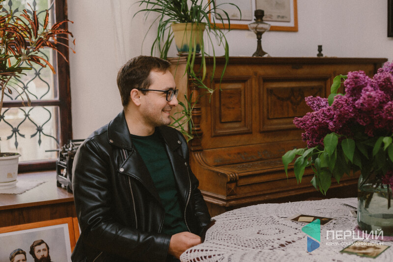 Я розказую цю історію Мирославові, поки піднімаємося сходами. Ми вмощуємося за столом, на якому стоїть букет бузку.