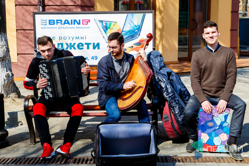 У центрі міста – гамірно і барвисто. На Театральному майдані – звична атмосфера теплого вихідного дня: діти влаштовують перегони на міні-автівках, дівчата з хлопцями спішать на побачення, а бабусі – на вибори))
