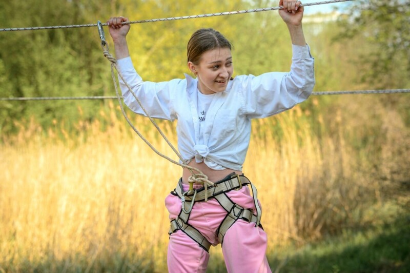 - Переправа через водну перешкоду – з використанням навісної переправи;