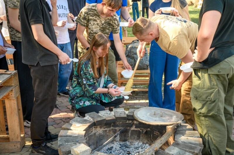 Також учасники мали змогу поспілкуватися з ветеранами війни та взяти участь у приготуванні традиційного військового кулішу.