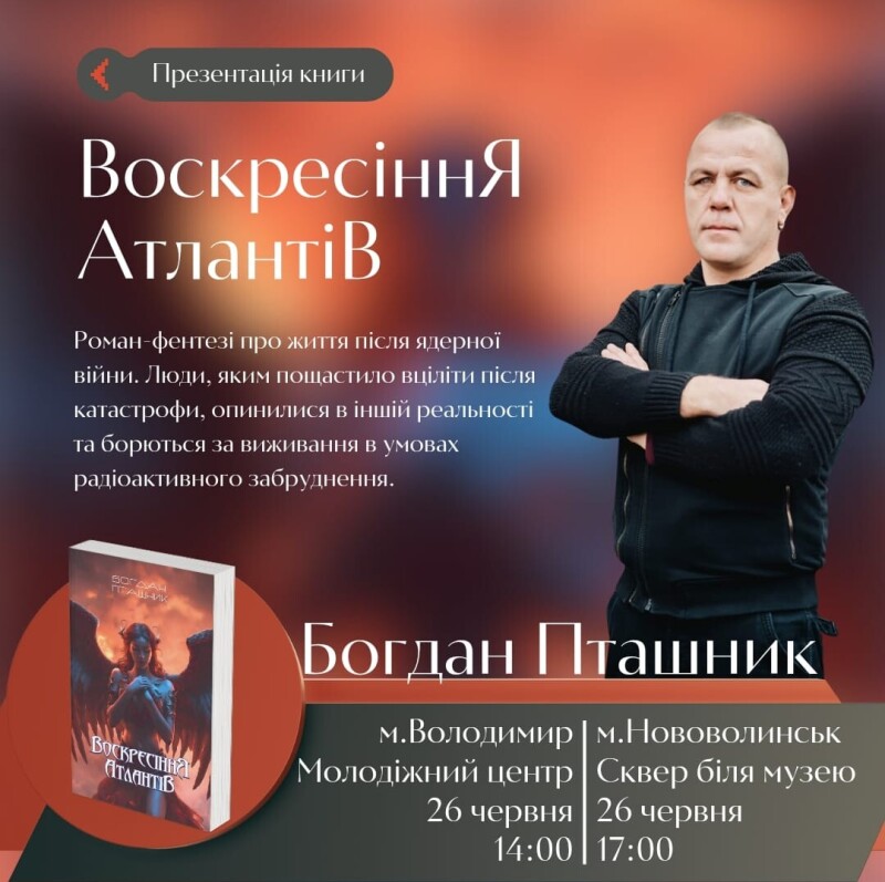 У Володимирі та Нововолинську відбудеться презентація книги письменника, публіциста, ветерана російсько-української війни Богдана Пташника «Воскресіння Атлантів».