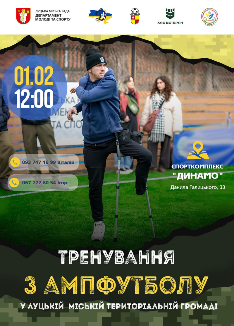 У суботу, 1 лютого, о 12:00, у спорткомплексі «Динамо» на вул. Данила Галицького, 33, пройде чергове тренування з ампфутболу.