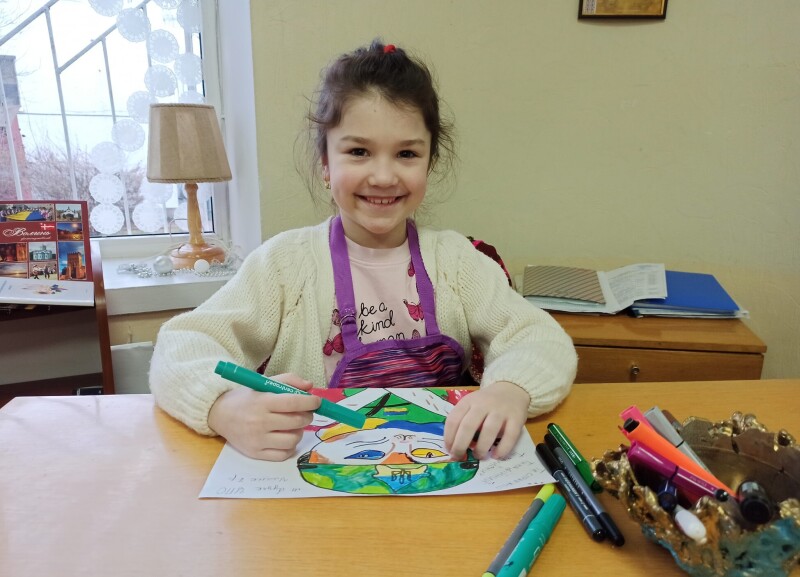 Уляна – вихованиця гуртка образотворчого мистецтва "Чарівна палітра" Центу позашкільної освіти Волинської обласної ради, який з перших днів війни спільно з волонтерами надсилає для військових на передову гуманітарну допомогу. Але, крім усього необхідного, до наших захисників їдуть також дитячі малюнки, які, як кажуть самі воїни, є для них оберегами.