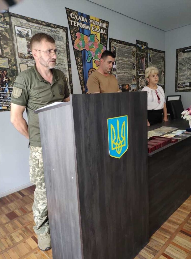 Також нагородили командира 55 окремого батальйону територіальної оборони України, молодшого сержанта Сергія Скрипника відзнакою «За оборону України».