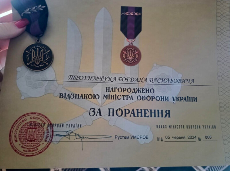 Захисника Богдана Трохимчука з села Залюття Дубечненської громади нагородили відзнакою міністра оборони України «За поранення».