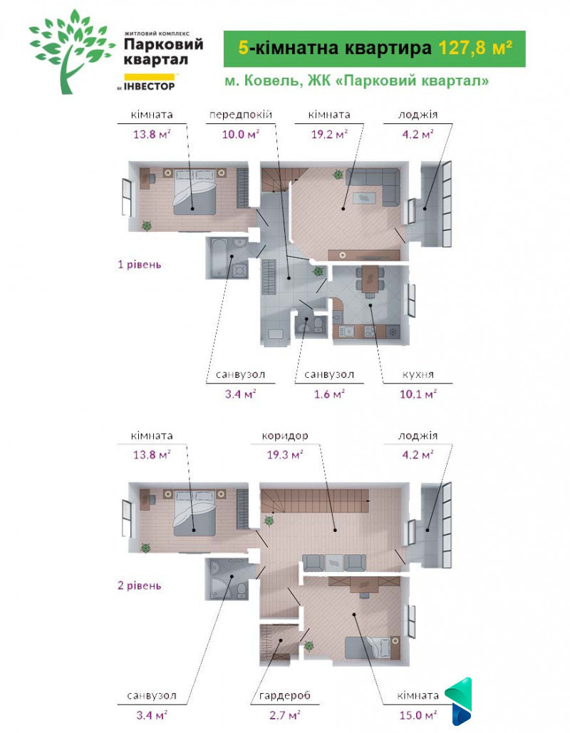 Але ще не все! Оскільки дворівневі квартири у ЖК «Парковий квартал» знаходяться на останньому поверсі, є можливість приєднати до них мансардний поверх, зробивши своє житло трирівневим.