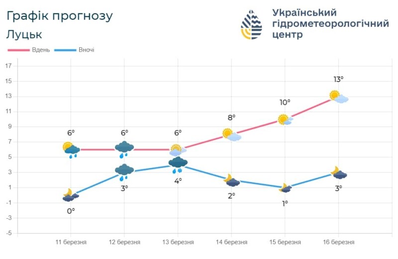 Так, найближчими днями чиноптики прогнозують дощі, вночі 13 березня з мокрим снігом.