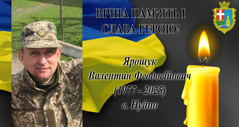 Під час виконання бойового завдання героїчно загинув молодший сержант 115-ї бригади Валентин Ярощук, 1977 року народження, житель села Нуйно.