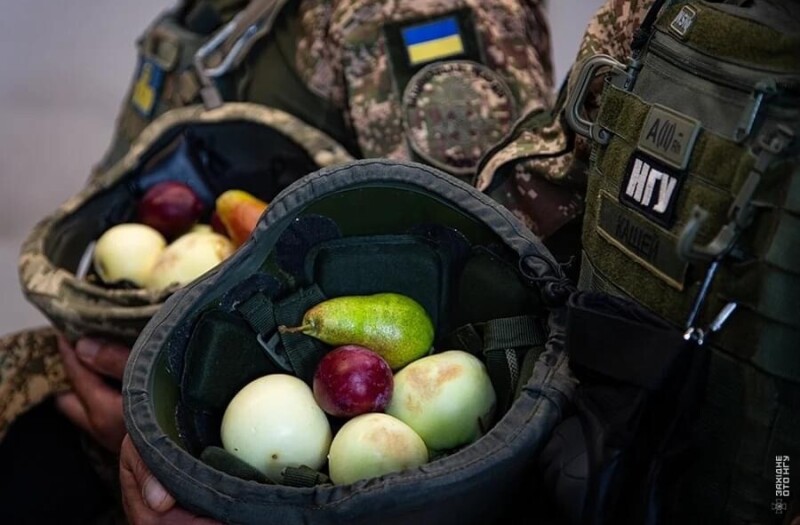 Військовий капелан отець Сергій освятив плоди і провів святкову літургію.