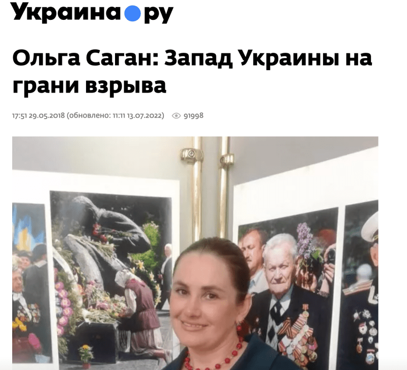 Серед її “доробку” в Україні — співпраця з одіозним депутатом Вадимом Колесніченком, якому вона допомагала возити виставку про “волинську різню”, організація різноманітних акцій до Дня перемоги, підтримка проросійських премій, поїздки до росії на заходи “співвітчизників”. Зокрема на “Міжнародний форум переможців” у Брянську в 2018 році.