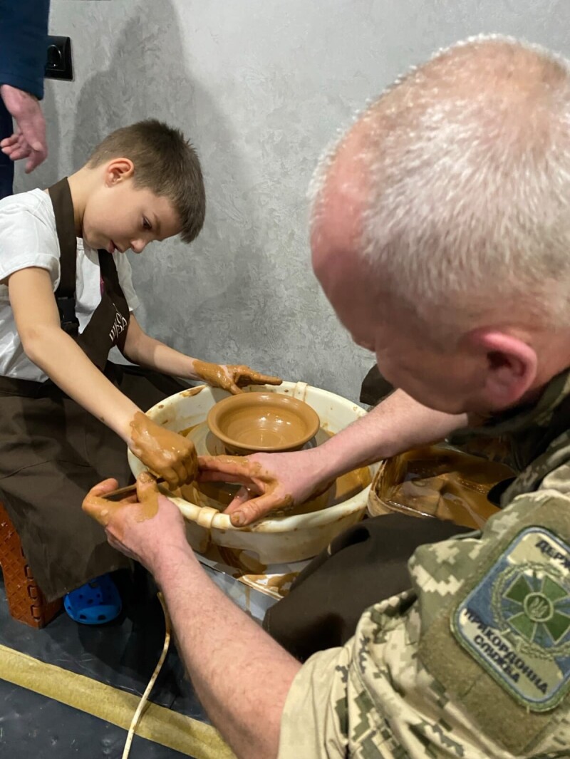 Ще однією цікавою частиною заходу стало ліплення з глини. Діти залюбки працювали з матеріалом, виготовляючи тарілки та глечики. Віктор Дудко запевняє, що гончарство не лише розвиває художні навички, але й має терапевтичний ефект, допомагаючи зняти емоційне напруження та покращити настрій.