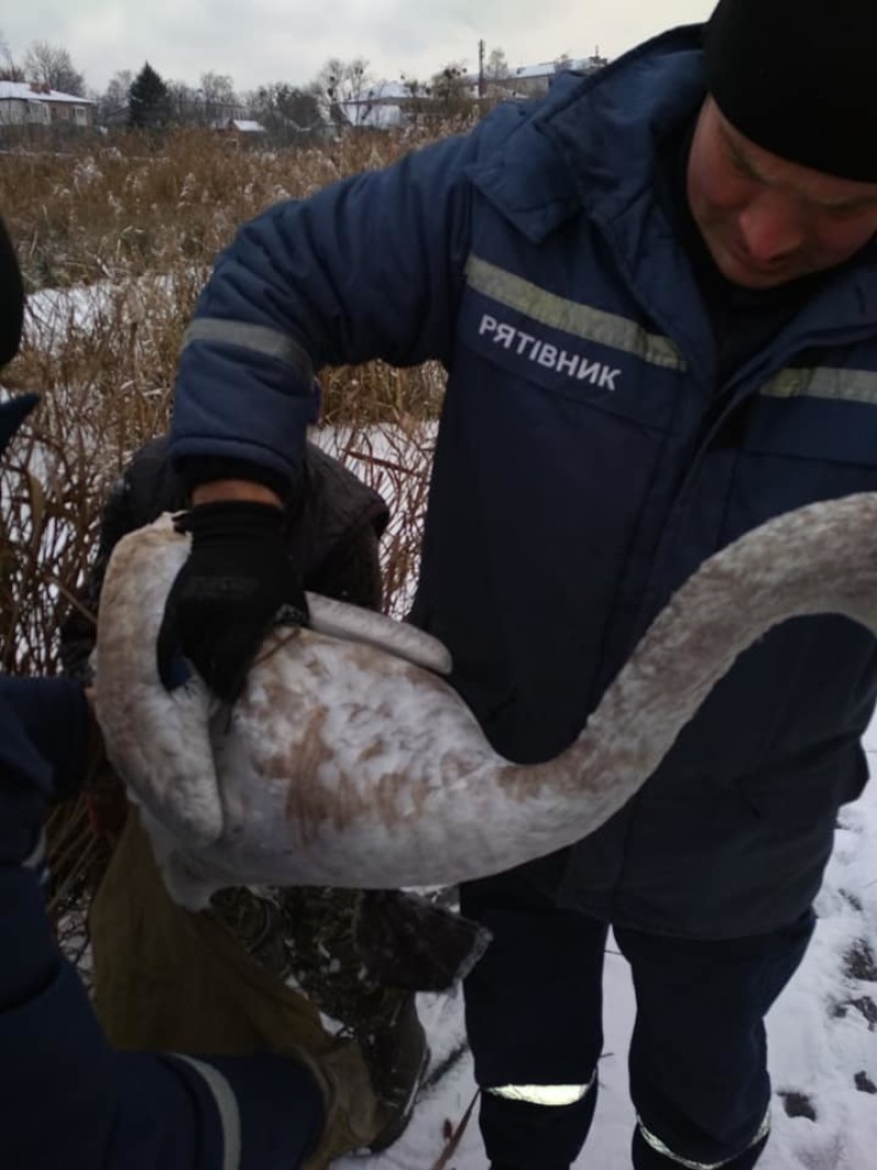 «Чергова варта аварійно-рятувальної частини Управління ДСНС у Волинській області сьогодні вранці визволила з крижаного полону лебедя, який примерз на водоймі поблизу Луцька на вулиці Ковельській», – написав автор.