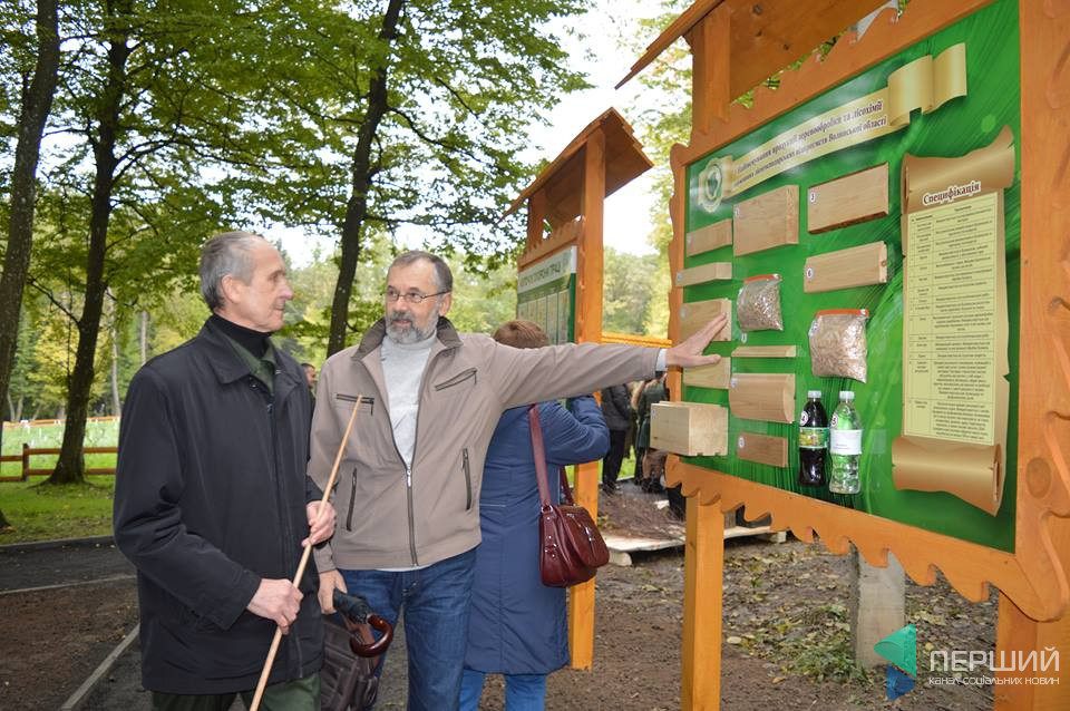 «Ми знаходимось в одному з дев’яти так званих класів для практичних занять», – урок по садівництву на території молодого яблучного саду проводить Борис Бабеляс, голова Волинської обласної організації товариства лісівників України. – Тут ми плануємо проводити заняття для нашої молодої зміни, починаючи від учнів молодших класів. Також є задум організувати на базі центру практику для студентів профільних факультетів вишів. Місця для ночівлі в будинках ми облаштували, тут можна і займатись навчанням, і відпочивати».