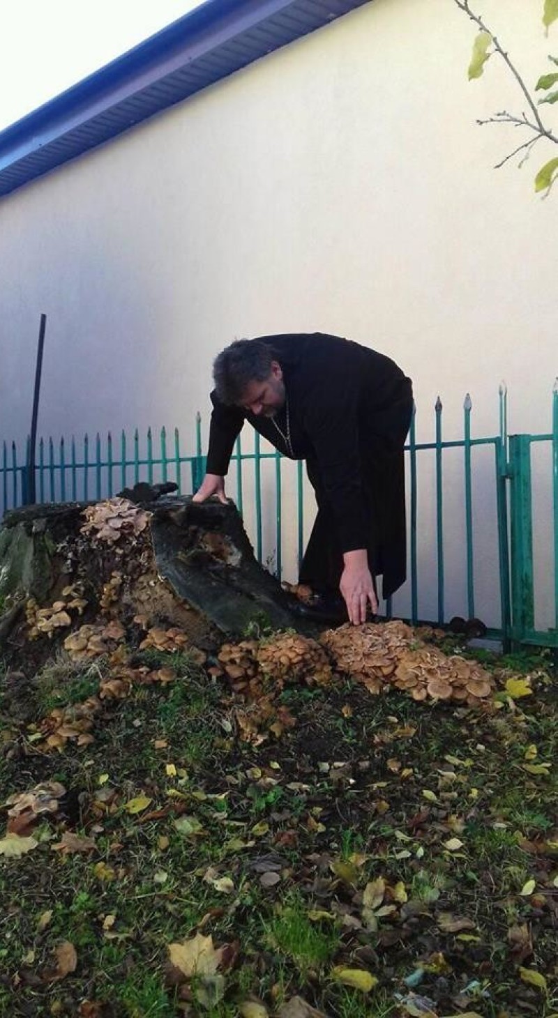 Священик назбирав біля церкви на Волині кілька відер грибів.