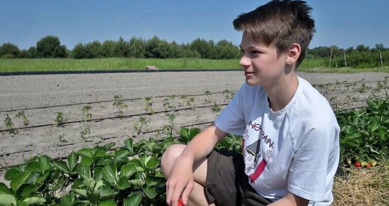 Доглядати за плантацією допомагають рідні: дружина, діти і батьки. Син Ілля каже, що збирати полуницю не важко й сам процес цікавий.